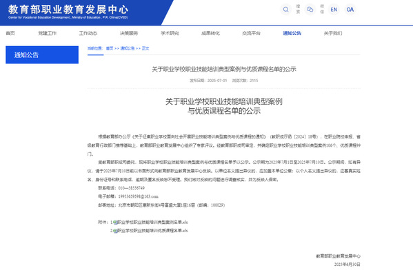 2024年9月12日,教育部办公厅发布《关于征集职业学校面向社会开展职业技能培训典型案例与优质课程的通知》(教职成厅函〔2024〕18号),学院教务处积极组织相关人员对照遴选要求和标准,精心制作课程资源,撰写典型案例,邀请专家指导打磨。学院将以此次国家级成果为契机,深化产教融合、校企合作,持续优化职业技能培训体系,加强培训课程建设,并充分发挥典型案例与优质课程的示范引领作用,加强经验推广与资源共享,为培养更多高素质技术技能人才、服务区域经济社会发展作出更大贡献。
