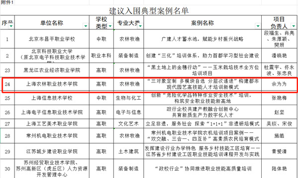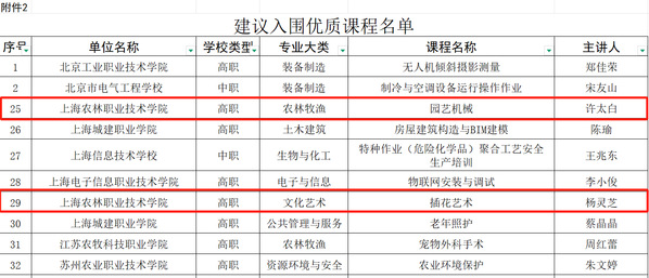 在近日教育部公布的职业学校职业技能培训典型案例与优质课程名单中,我院荣登榜单,《“三对象定制 多模块自选 分层次递进”构建都市现代园艺高技能人才培训新模式》被评为职业技能培训典型案例,《园艺机械》与《插花艺术》两门课程被评为优质课程,彰显了我院在职业技能培训领域的卓越成就与创新实力。