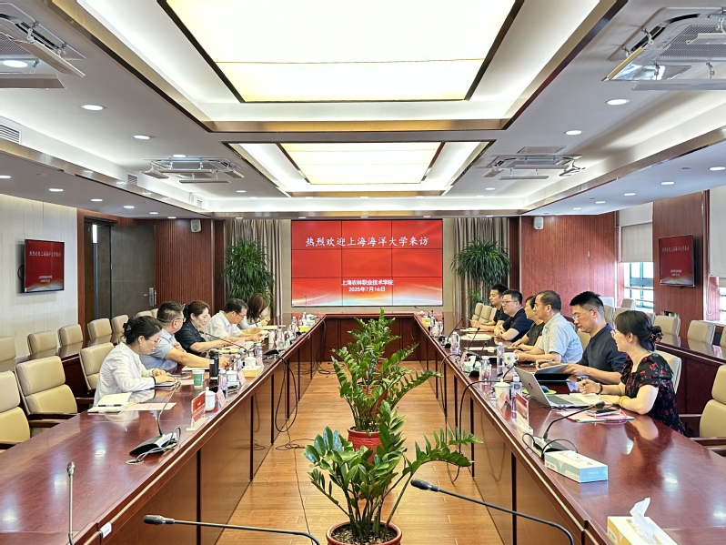 7月16日,上海海洋大学党委常委、总会计师郭爱萍、社会协同和校友事务处处长江卫平、上海海洋大学国家大学科技园总经理张建敏、副总经理任乾乾等一行6人来校座谈交流。院长陈立婧、党委委员、副院长潘国俭、副院长张江及科研处、实训基地相关人员出席会议。双方围绕产学研深度融合、农业科技成果转化、人才培养与劳动教育实践等议题展开深入交流。