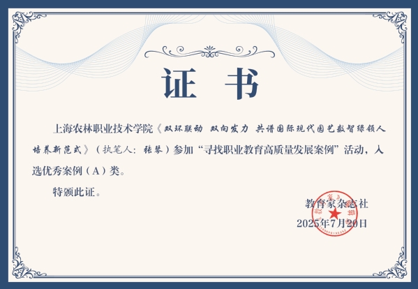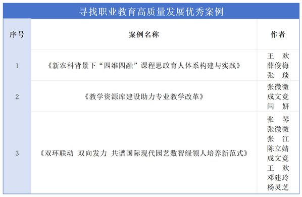 近日,光明日报《教育家》杂志主办的“寻找职业教育高质量发展优秀案例”评选结果揭晓。在全国85个获奖案例中,我院《新农科背景下“四维四融”课程思政育人体系构建与实践》《教学资源库建设助力专业教学改革》《双环联动双向发力共谱国际现代园艺数智绿领人培养新范式》三个案例入选,展现了我院在职业教育领域的创新实践成果。