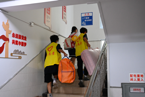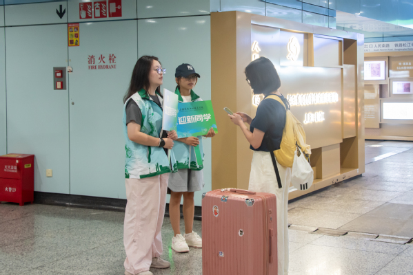 为确保2025级新生顺利入学,团委联合各系团总支组建了一支200余名学生的迎新志愿者服务团队。志愿者们经过统一培训,提前熟悉各环节流程。迎新期间,他们身着统一服装,在火车站、地铁站接送新生,在校内引导报到路线、协助办理入学手续、帮新生搬运行李,耐心引导、答疑解惑,确保新生及家长“一站式”完成入学程序,单日服务时长超过10小时。志愿者们用“青春守护”的方式传递校园温暖,用高效有序的服务为新生开启大学生活,让“初来乍到”的萌新满是安心。