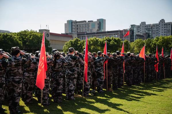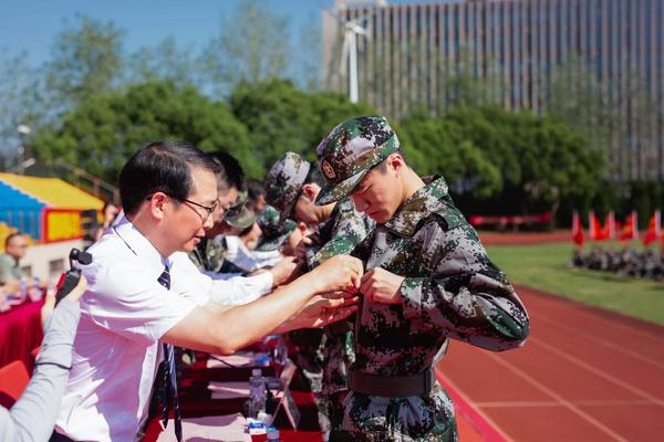 武警上海总队机动第二支队副支队长蒋玉晶任命本次军训教官。教官代表陈肯作训前承诺。相信在教官们的严格指导下,同学们定能收获满满、成长迅速。