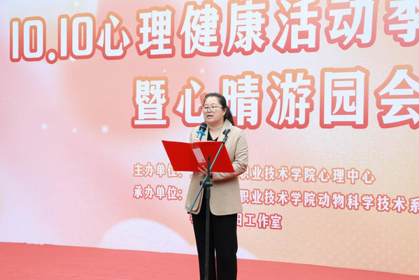 党委学工部部长高东菊介绍了本次游园会的特色与亮点。她提到,高职学生处于技能成长与自我认知的关键期,面临学业、实训、人际及职业规划压力,需重视心理“检修”与“滋养”,鼓励同学们放下顾虑,在轻松互动中收获心理知识与快乐,以积极心态面对挑战,找到属于自己的精彩。