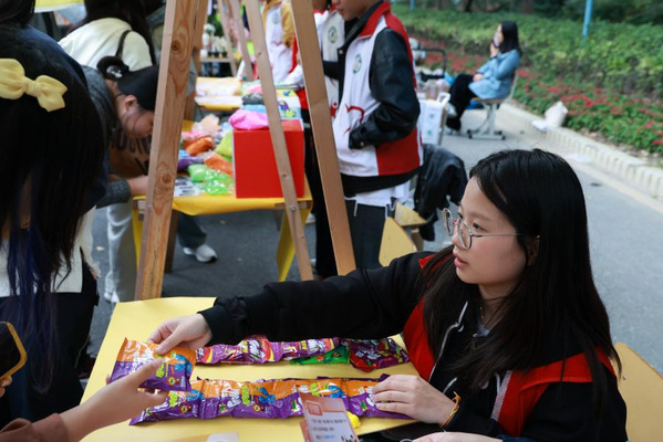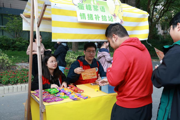 “慧职梦”生涯规划工作室的“蜜糖絮语·情绪补给站”前,志愿者用“你今天真的很棒”“小挫折都是成长的勋章”的温柔絮语,轻轻包裹每一颗需要慰藉的心,以甜蜜对话和彩色糖果为心灵注入温暖能量。