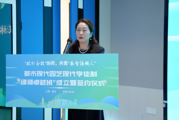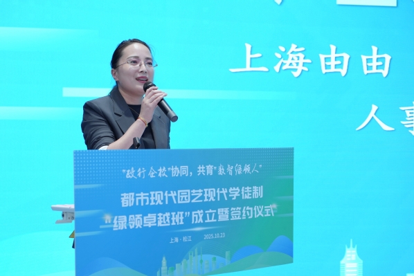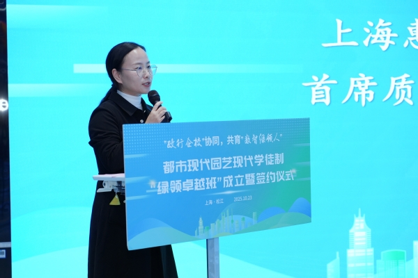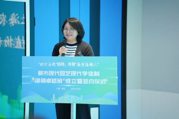 陈立婧在致辞中指出,作为教育部首批现代学徒制试点单位,学院积极响应国家职教改革部署,去年底牵头成立了全国都市现代园艺产教融合共同体和产业学院。她强调,学院积极落实《上海市高等职业教育全面适配产业发展工作方案》精神,旨在创新现代学徒制高技能人才培养模式,与共同体内多家行业领军企业携手,共同探索打造新型现代学徒制“绿领卓越班”。希望同学们锤炼一流技能,涵养一流素养,厚植一流情怀,做“精技艺、懂管理”的数智绿领人。