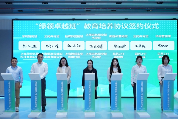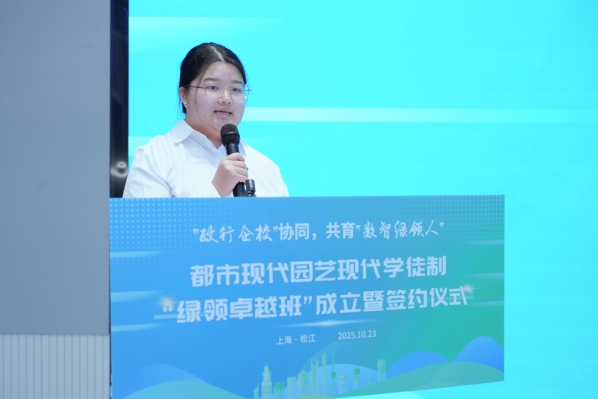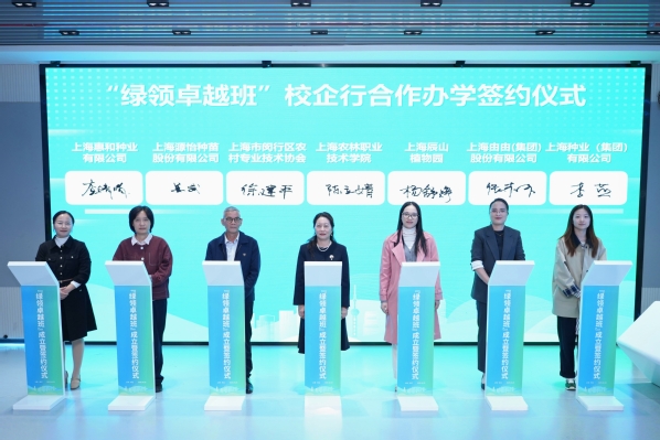 随后,陈立婧与合作单位导师代表、学生代表签署教育培养协议,进一步明确各方在人才培养中的权责,推动企业真实岗位需求全面融入教学全程。各专业班级学生经过自主选择、企业面试,分别加入“辰禾匠星班”“惠和种业班”“云间卉谷班”“闵行农匠班”等“绿领卓越班”的方向班。学徒制班的成立得到了松江区和闵行区农业农村委员会的大力支持,联系协调相关优质农业企业成立。
