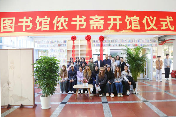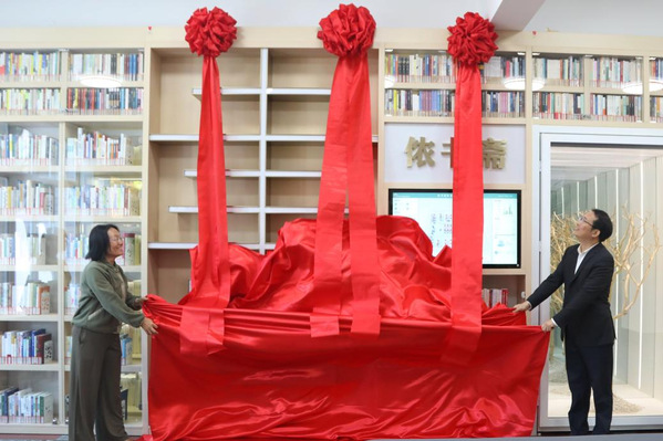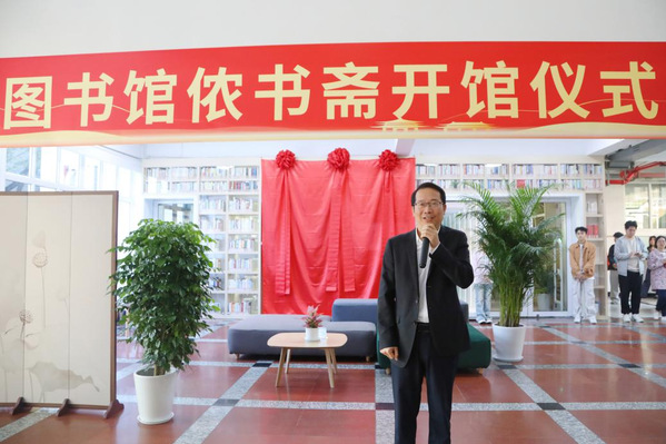 开馆仪式前,潘国俭副院长与图书馆馆长樊清誉共同为侬书斋揭幕,揭去象征启用的“红盖头”。潘国俭在致辞中阐释了“侬书斋”的命名深意:“侬”在上海话中意为“你”,又与“农”字同音,而“书斋”即书房之意。取名“侬书斋”,是希望这里成为同学们静心学习、阅读与修炼的雅室。他鼓励同学们常来此驻足,期待侬书斋成为启迪智慧、滋养心灵的精神家园,陪伴大家成长成才。