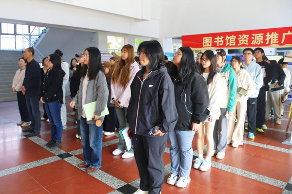 侬书斋正式开放的同时,图书馆资源推广集市也在第一教学楼底楼大厅同步启动,为师生提供便捷服务。