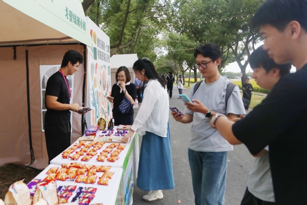 艺术节集市上,我院大一学生依木然江的摊位吸引了不少游客驻足。作为一名心怀“毕业返乡创业”理想的学子,他特意借助艺术节平台,将家乡的特色产品一一陈列,从特色干货到零食小吃,每一件商品都是他精挑细选的。作为一名怀揣毕业返乡创业理想的学生,他借助艺术节平台展示家乡特色产品,并介绍相关风俗文化。“希望通过这个窗口,让更多人了解我的家乡”他一边展示产品一边说。这一实践既是他个人创业想法的初步尝试,也是“同心共筑上农泖耕”品牌建设的生动体现,通过搭建实践平台,既支持民族地区学子成长成才,又为民族文化在乡村场景中的传播搭建了桥梁,实现了“学子成长”与“文化传播”的双向赋能。有关领导亲切询问了目前的销售情况,并对他将风俗文化介绍与产品展示相结合的创新做法表示赞许,鼓励他将个人理想与家乡发展紧密结合,在实践中积累经验,为乡村振兴贡献青春力量。