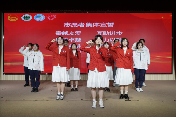 三年级小叶子王杨作为志愿者代表发言,分享了服务进博的初心与期待。仪式最后,全体志愿者以真诚而响亮的青春之声庄严宣誓:“奉献友爱、互助进步;追求卓越、全力以赴;奋勇前进、博彩上农;向前进、博青春;为进博、一起来!”誓言铿锵,充分展现了上农“小叶子”践行志愿精神、全力服务第八届进博会的信心与决心。
