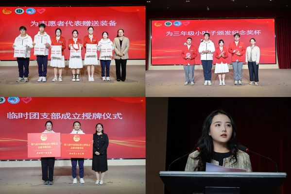 学工部部长高东菊为志愿者代表发放了服务装备,学工部副部长张莎莎为连续三年参与服务的“三年级小叶子”颁发了纪念奖杯。团委书记张楠为临时团支部授牌,院团委进博会工作负责教师刘雅姗介绍了本届进博会志愿服务的整体筹备情况。