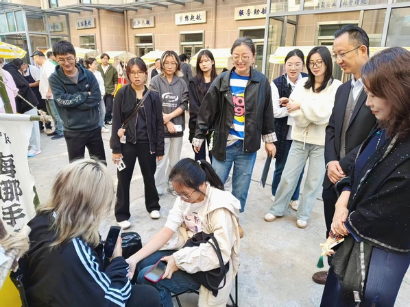 “一站式”学生社区内的中医药及传统文化集市同步开市。现场设有来自余天成的养生茶饮、中医药产品、健康理疗等体验摊位,以及学生创作的文创展示摊位,总计十余个。为增强互动,活动还设置了“重阳有礼”环节,吸引了众多师生参与,在活跃的氛围中有效传播了中华优秀传统文化。据统计,集市当日实现营业收入2000余元。