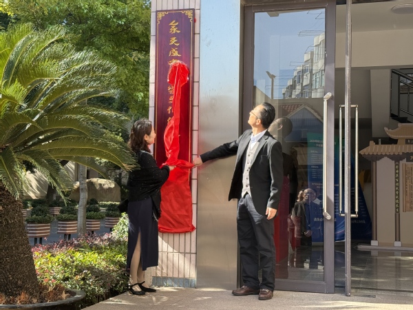 创意系主任路以兴回顾了与余天成公司的合作历程,提到中医药文化进校园具有传承创新、产品研发和文化传播三重意义。余天成总经理张许杰表示,此次揭牌是校企合作深化的里程碑,也是职业教育创新发展的新起点,未来将以文化长廊为平台,持续推进多维度合作。