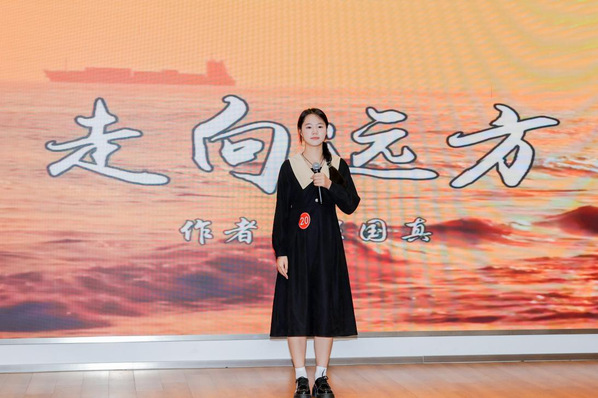 此次是我院图书馆首次参加市级诵读比赛。图书馆高度重视本次赛事,自接到比赛通知以来,在两位老师指导下,马琪诺同学认真备赛,从对作品的理解入手,再对诵读语气节奏、肢体语言、表情,到背景素材的选取和优化打磨,都进行着细致调整和改进,甚至在服饰妆容等细节上也力求完美,全方位提升作品的感染力。参赛作品《走向远方》紧扣青春与成长主题,既展现了当代青年学子的昂扬风貌,也传递了对理想信念的执着追求。