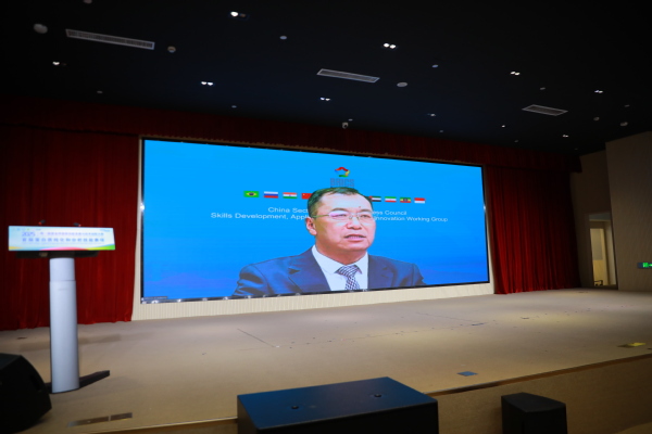 金砖国家技能发展与技术创新大赛组委会执委会主席、一带一路暨金砖国家技能发展国际联盟理事长、一带一路暨金砖国家技能发展与技术培训中心主任、金砖国家工商理事会技能发展、应用技术与创新中方工作组组长刘振英博士带来线上讲话,指出大赛作为金砖国家间技能合作的长效机制,为各国技能人才交流互鉴、技术创新成果转化搭建了重要桥梁。上海金鹏分析仪器有限公司总经理王培培代表承办单位致辞,表达了深化校企合作、助力技能人才培育的决心。参赛选手代表与裁判代表分别宣誓,承诺将秉持公平公正、精益求精的原则参与赛事。随后,朱宏书宣布大赛正式开赛,并预祝参赛选手取得理想成绩。