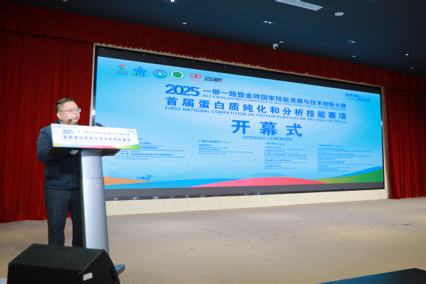 陈立婧在致辞中向与会领导、嘉宾及参赛师生表示热烈欢迎。她表示,学院深耕职业教育78载,在生物医药等领域积累了扎实的教学基础与实践经验。承办首届蛋白质纯化和分析技能赛项,既是学院践行“一带一路”倡议与金砖国家合作共识的具体举措,也是深化产教融合、以赛促教的生动实践。学院将以周密的安排、细致的服务保障赛事有序开展,助力参赛选手们展示专业技能与风采。