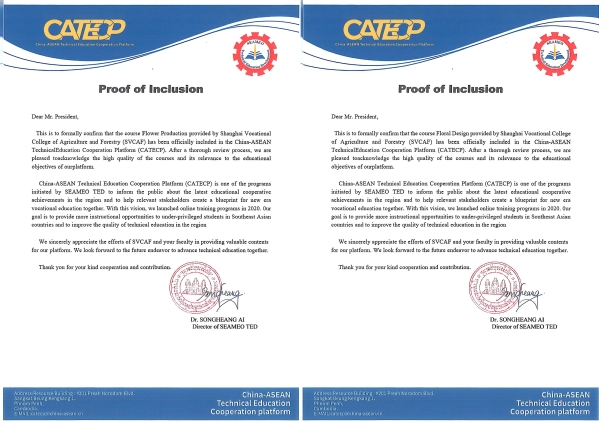 在标准输出方面,继去年成功将乍得国家职业标准推广成果案例化并正式由大连理工大学出版社出版后,植科系今年再传捷报。在东南亚教育部长组织及其技术教育发展区域中心(SEAMEO TED)的支持下,园艺技术专业又顺利通过中国—东盟技术教育合作平台(CATECP)审核认证,正式纳入该体系,获颁两项专业标准认证证书。目前,该专业标准已输出至两国并实现区域辐射,标志着专业建设正式迈向国际化新阶段。