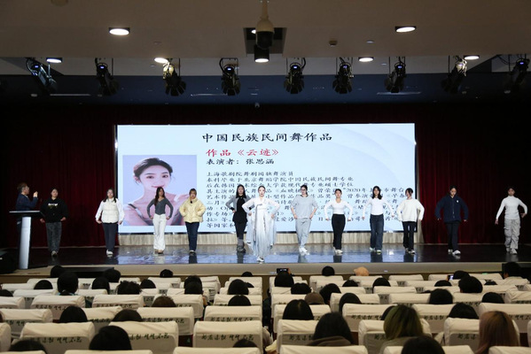 为进一步强化学校美育的育人功能,提升学生艺术素养,让学生近距离感受高雅艺术的魅力,11月19日,《中国舞韵之源》艺术导赏活动在我校精彩上演。上海歌剧院舞剧团编导马涛携手舞团演员,以“现场讲授+经典演绎”的形式,为300余名师生带来了一场沉浸式的中国舞艺术盛宴,让师生在光影流转中感受中华优秀传统文化的独特魅力。