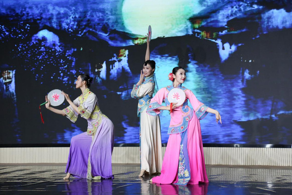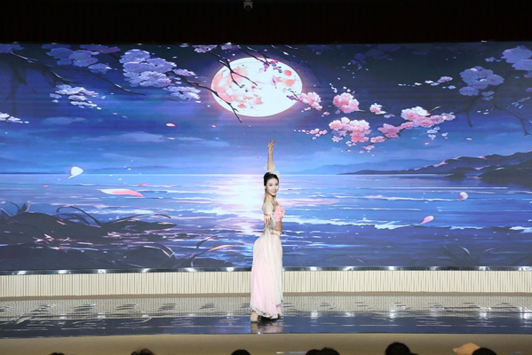 舞台上,演员们通过独舞、双人舞、三人舞及舞剧选段等多元形式,先后演绎了《春江花月夜》《云迹》《乘风归去》《浔阳遗韵》《嫦娥》等经典剧目。柔美的身段、灵动的舞姿与悠扬的配乐相得益彰,精准呈现出中国舞柔和清丽、百转千回的艺术韵律,将观众带入一个个意境悠远的艺术世界,赢得现场阵阵掌声。