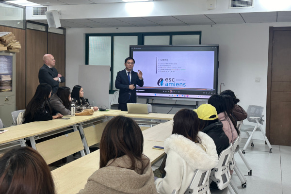 同日下午,“数字经济管理类专业学分互认课程班”第二期启动仪式在综合楼701举行。副院长张江、杜勒沙校长、法国亚眠高商亚洲市场主管严威先生,以及国际合作交流处、创意系师生代表参加。创意系主任路以兴主持会议并致辞。