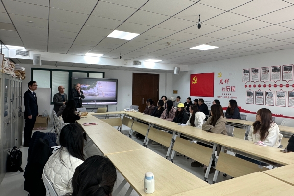 路以兴对法方代表的再次到访表示欢迎,感谢对方在项目推进中的持续支持,并介绍了第二期项目的开展计划与具体要求。杜勒沙通过视频形式带领同学们“云游亚眠”,从百年历史的亚眠大教堂到活跃的课堂与学生活动,展现了校园文化与教学氛围,拉近了与在场学生的心理距离。