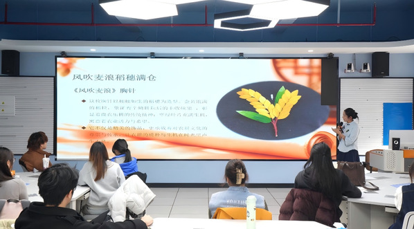 学生作品汇报及分享活动由艺术课教师赵琳娜主持。基础部主任宋常英在致辞中谈到非遗传承对于文化育人及培养学生工匠精神的重要意义,并肯定了基础部在跨学科教学实践方面取得的成效。