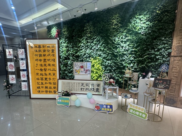 活动在综合楼大厅拉开帷幕,现场分为静态成果、动态展演及互动体验环节。静态展区内,展示了学生艺术课程非遗创新优秀作品与教学实践陈列。学生们创作的非遗黏土、剪纸、油纸伞螺钿、钩针、缠花等作品,以工匠精神,显创意技能,吸引师生们的驻足欣赏。