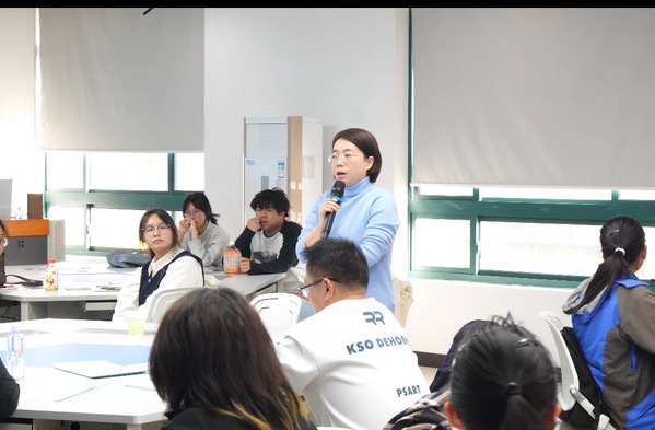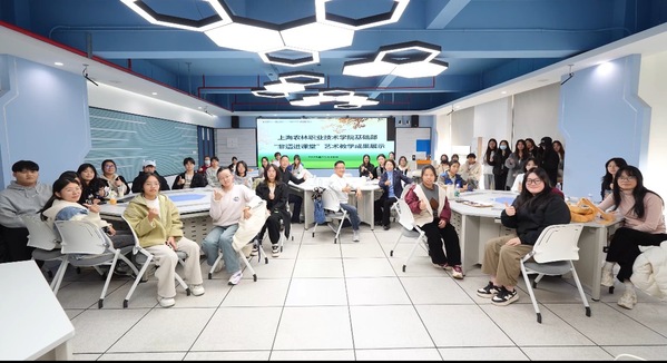 在专家点评与讲座分享环节,松江区文联驻会副主席、融媒体中心副主任陆春彪与非遗田山歌传承人沈杰对展示成果给予了高度评价。他们从非遗保护的专业视角出发,肯定了同学们在技艺掌握与文化表达上的努力,并就如何进一步深化作品内涵、拓展传承路径提出了宝贵建议。陆春彪就围绕本土非遗的当代价值与传播实践进行了简短而精彩的分享。