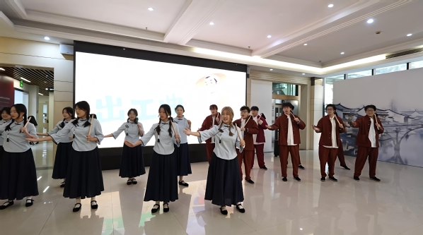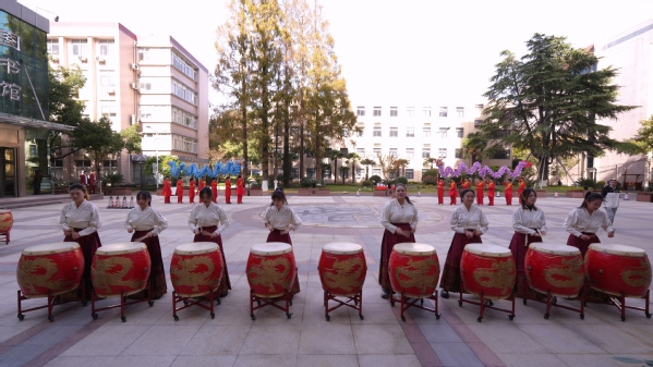 动态展演精彩不断。学院田山歌队以带有地方特色的新浜山歌《出工曲》《问黄蟹》两首作品,展现了原生态的表演,赢得现场阵阵掌声;随后震撼人心的《鼓动山河·龙腾狮跃》鼓乐和龙狮表演点燃全场气氛。