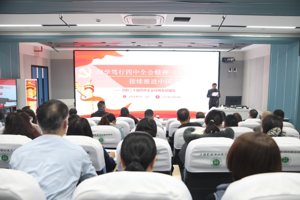 12月4日,学院举行理论学习中心组(扩大)会,专题学习党的二十届四中全会精神(以下简称“全会”),进一步深化理论武装、凝聚思想共识、汇聚发展合力。会议邀请上海交通大学研究员王昆博士作专题辅导报告。学院党政领导班子、全体中层干部参加。党委书记蔡红主持报告会。