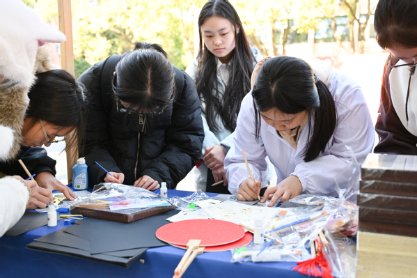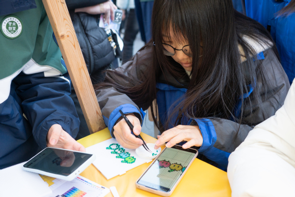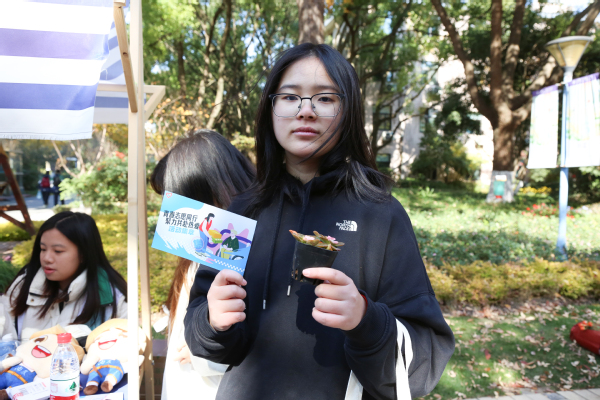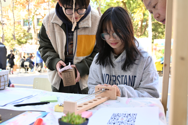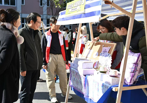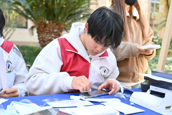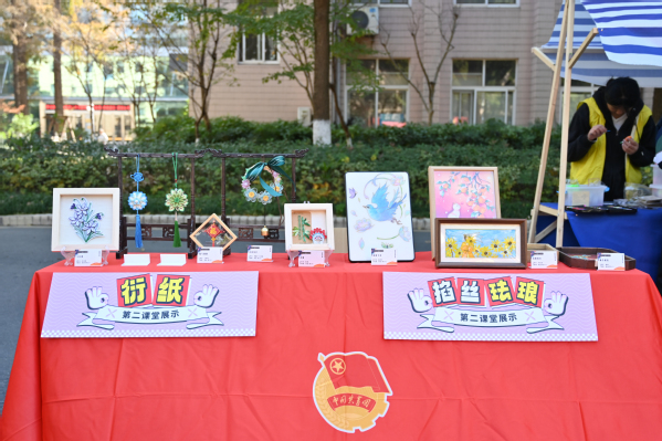 本次公益集市还特别设置了第二课堂展示区,集中展示了第二课堂的学习成果。油画、掐丝珐琅、创意模型、衍纸工艺等作品琳琅满目,手工缝纫、玻璃画、非遗螺钿、烧箔画、创意黏土等六大互动体验摊位更是吸引了众多师生参与,现场气氛热烈非凡。