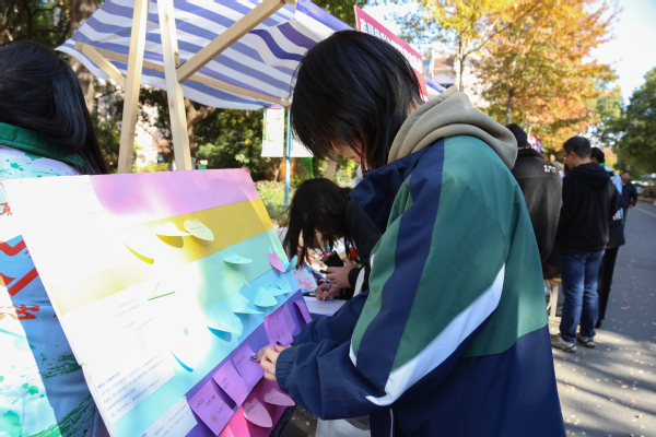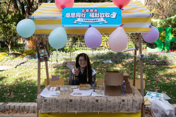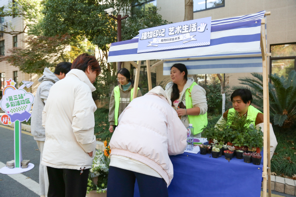 开幕式后,公益集市在广场拉开帷幕。本次集市设有五大主题区,分别为联合打卡区、志愿问答区、多彩活动区、生活服务区、第二课堂展示区。在联合打卡区,院青年志愿者协会与院团委宣传部携手开展联动志愿服务,扫码关注上农青年公众号参与活动。现场精心设计了人格检测、拓印画体验等互动环节,以联合打卡形式汇聚多元特质的志愿力量,营造出包容协作、活力四射的志愿氛围。