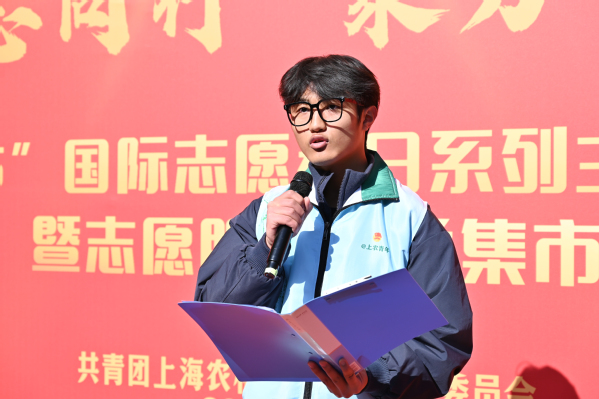 院青年志愿者协会负责人软件241班曹士博作为志愿者代表上台宣读《志愿服务倡议书》,呼吁更多人加入志愿服务行列,希望同学们可以争做志愿精神的践行者、专业技能的传播者和志愿文化的倡导者,以爱心为笔、以行动为墨,在校园的画卷上书写志愿服务的温暖篇章,让青春在奉献中闪光,让校园因志愿而温暖!