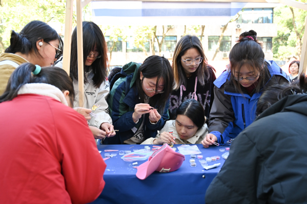 在多彩活动及生活服务区,各系志愿服务团队倾情打造艺术插花、传统刺绣、创意彩绘等精彩活动,更贴心提供超声波眼镜清洗、手机贴膜、专业美妆修眉等生活服务。这些充满艺术气息的志愿服务项目,既点亮了志愿精神,更为参与者创造了难忘的彩色回忆。