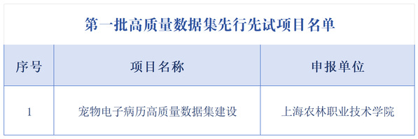 近日,上海市数据局公布了首批高质量数据集先行先试项目名单,我院申报的“宠物电子病历高质量数据集建设”项目成功入选,成为全市61个获批项目之一。