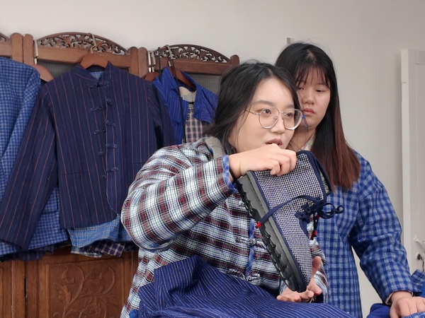 更“卷”的是,他们还把课堂搬进了井凌桥村的直播间!50余条短视频、10余场直播,学徒们用镜头语言讲述筘布背后的故事,为非遗文化搭建起通往现代市场的“数字桥梁”。一场场直播下来,筘布不再是博物馆里的“老物件”,而成为了可以走进年轻人生活的“潮流单品”。