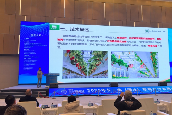 12月20日,2025年长三角(溧水)草莓产业发展交流会及创新成果展在南京市溧水区白马国际博览中心开幕。我院“黄大年式教学团队”青年教师杨平应邀作题为“温室悬挂栽培草莓智能化生产技术”专题报告,该项技术同时被列为2025年长三角草莓产业12项“推荐成果”正式发布。