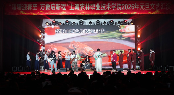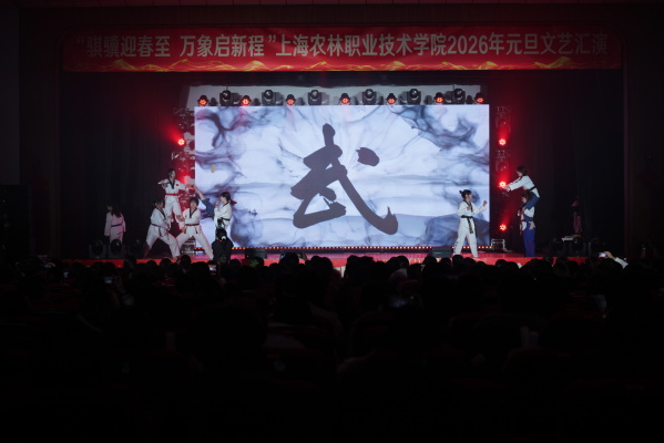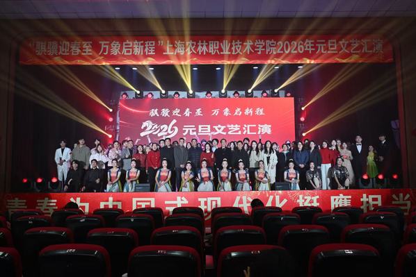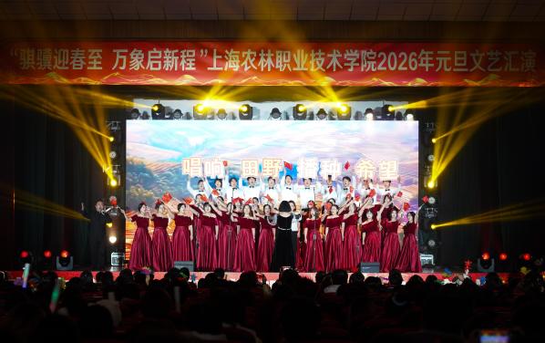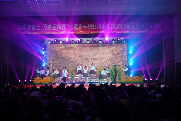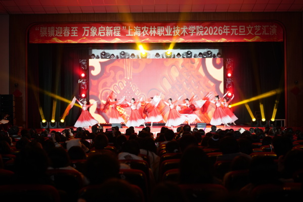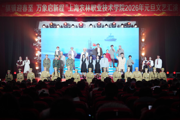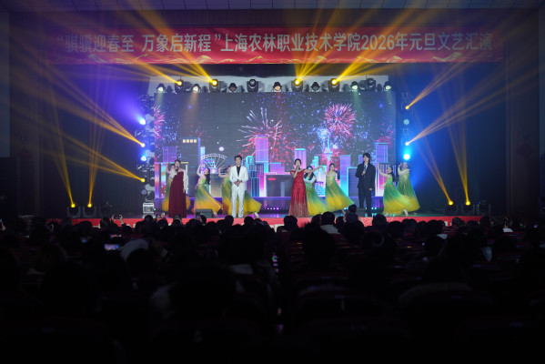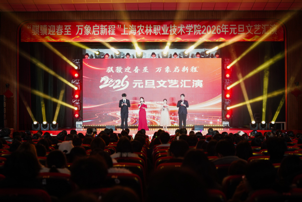 12月30日晚,“骐骥迎春至 万象启新程”上海农林职业技术学院2026年元旦文艺汇演在礼堂举行。学院党政班子成员,相关职能部门负责人,各系学生工作负责人以及来自上海电子信息职业技术学院学生会、上海电影艺术职业学院学生会的同学们和广大师生代表近800人齐聚一堂,共贺新年的到来。