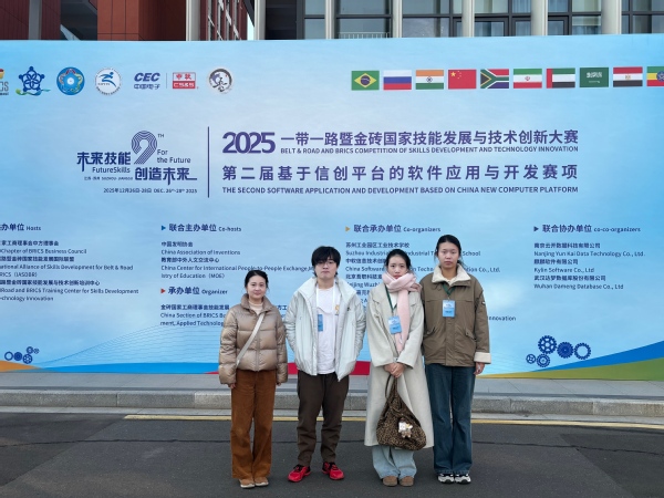 12月26日至28日,2025一带一路暨金砖国家技能发展与技术创新大赛第二届基于信创平台的软件应用与开发赛项(中高职组)决赛落幕。智慧农业工程系软件技术专业三名学子与来自全国104所院校的223名选手同场竞技、奋勇拼搏,最终取得优异成绩。其中,软件(高本贯通)231班郑嘉仪荣获三等奖,软件241班李贵莹、王诗杰获优胜奖。