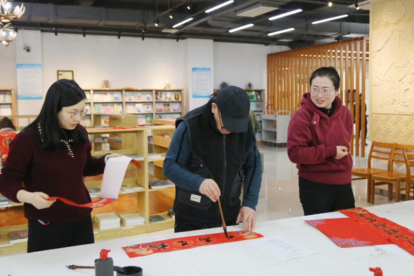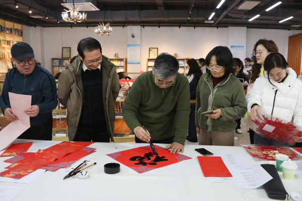 “马行千里不辞远 人进百尺再攀登”。在马年来临之际,图书馆和工会联合举办2026年“写春联 送祝福”活动。副院长潘国俭来到综合阅览室,与师生们一同沉浸在书香墨韵交融、笑语欢声相和的喜庆氛围之中。