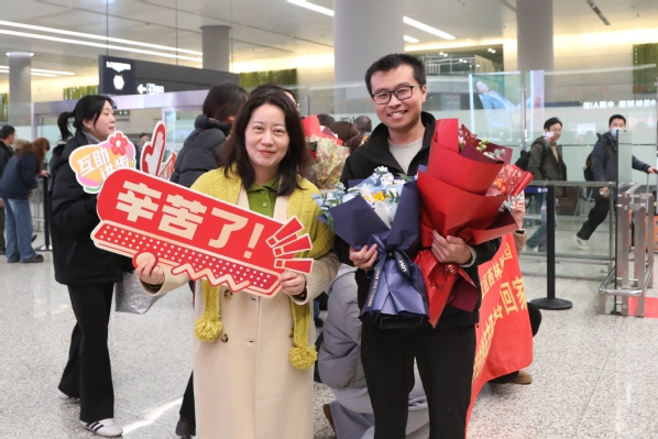 1月23日晚,第十三批中国(上海)青年志愿者赴老挝服务队的队员们在完成为期半年的志愿服务后载誉而归,顺利返沪。迎面而来的是鲜花、欢迎横幅和伙伴们期待的面庞。我院青年教师陈岳作为服务队成员之一载誉而归。院长陈立婧、团委、植科系、国交处、宣传部等部门人员及师生代表共同迎接。