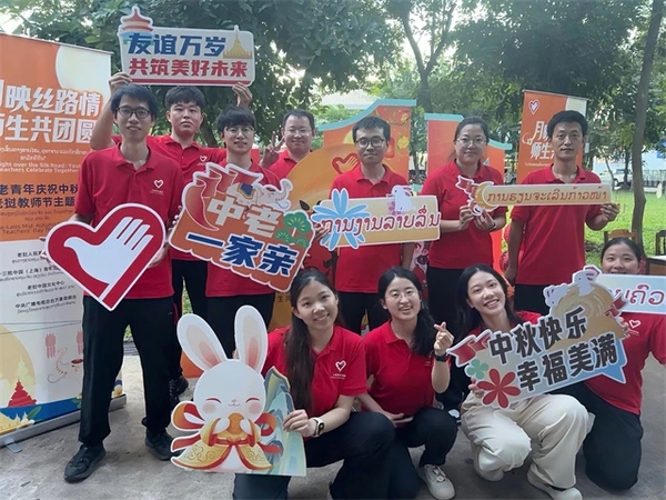 除了岗位工作外,陈岳和服务队的其他志愿者们还结合不同的节日,积极策划各类活动,通过“玩起来”的方式,让老挝民众对中国传统文化形成更深刻的理解。除了科普活动,他们还结合中国中秋节与老挝教师节策划了“月映丝路情 师生共团圆”中秋活动。活动中,制作漆扇、讲述中秋习俗、分享月饼等趣味环节,让老挝的孩子们乐在其中。老挝人民革命青年团中央还为志愿者们颁发证书,表彰他们在推动老挝青年少年工作发展中作出的突出贡献。