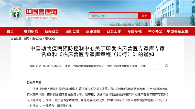 我院两位教师入选国家级临床兽医专家库,既是对个人专业能力的认可,也是对学院研发实力、临床服务水平与行业影响力的充分肯定。