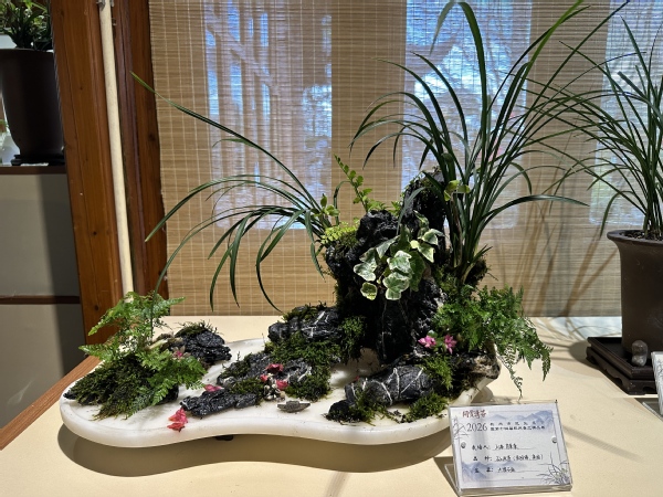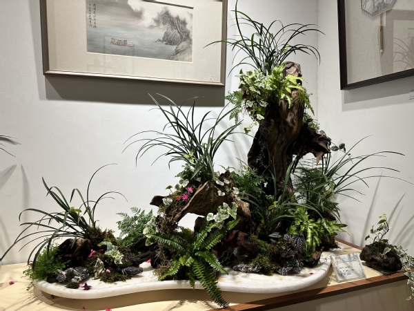 参展作品以春兰为主体,融合山水盆景艺术表现形式,在造型构思、空间布局与文化表达上彰显传统韵味与时代审美的有机结合,充分展现兰花清雅高洁的精神内涵。作品集中体现了学院在兰花栽培管理、艺术创作及实践教学方面的专业积淀与育人成果,赢得现场观众与业内人士的高度关注。