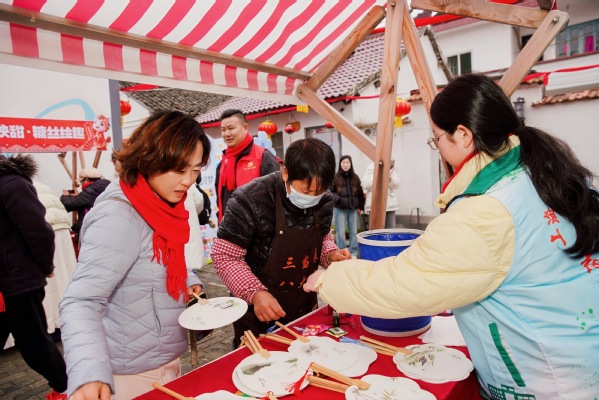 活动当天正值元宵佳节,学生处、团委还组织了学生志愿者团队走进乡村,将专业特色与传统文化带到田间地头。志愿者们不仅做好活动的引导和礼仪工作,还带来了精彩的鼓乐表演。他们还积极协助老师教小朋友们包元宵,并精心策划了“艾香手作·福韵香囊”“糖韵绘影·拓印流年”“漆韵清风·扇绘非遗”等互动体验活动,吸引了众多参与者。这些充满青春创意的活动不仅弘扬了中华优秀传统文化,更展现了农林学子在劳动中创造美、在实践中服务社会的精神风貌。