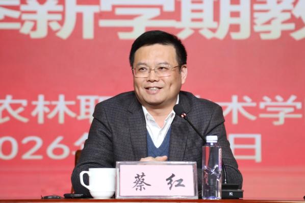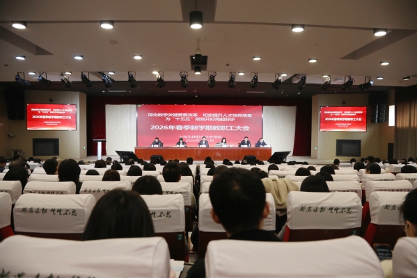 3月6日,在综合楼205报告厅,学校召开2026年春季学期教职工大会。党政领导班子出席。党委书记蔡红主持并讲话。