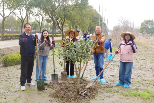 为深入践行绿色发展理念,深化校际合作与劳动教育实践,3月12日,在浦东实训基地,学院与上海电机学院附属科技学校(上海市临港科技学校)共同举办“同植此青绿 共育匠才林”植树节主题活动。学院党委委员、副院长潘国俭,实训基地主任富剑文、动科系主任滑志民、团委书记张楠,上海电机学院附属科技学校党支部副书记唐佑铭、学生发展处主任郁志刚、团委书记沈轩仪,以及两校教师代表、学生志愿者共同参加活动。