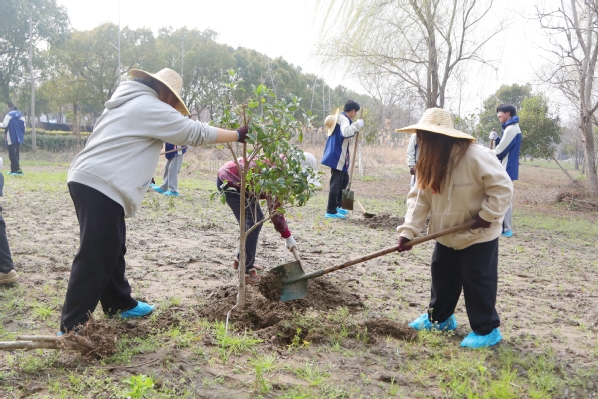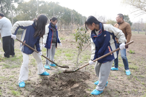 授牌结束后,与会领导、教师与学生志愿者一同挥锹铲土、扶苗填坑、浇水培土,默契配合、齐心协力栽下树苗。一棵棵新苗迎风而立,象征着两校深厚情谊与青年学子茁壮成长的美好愿景。