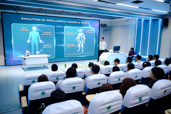 人形机器人竞速障碍赛体验环节,学生们目睹机器人如何借助先进传感器与算法灵巧穿越复杂障碍、实现高速移动。通过互动操作,大家切身感受到智能控制技术的精妙与强大。