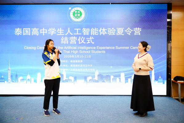 结营仪式上,主办方为全体参营学生颁发研学证书,并对技能考核表现优异的学生予以表彰。泰国暖武里河王中学带队老师表示,此次夏令营课程丰富、安排紧凑,让学生们走出课堂,近距离接触人工智能技术与中国智慧农业发展成果,不仅提升了学生的科技认知与实践能力,更让大家感受到了中国职业教育的办学特色与魅力,收获满满。参营学生表示,此次学习体验令人难忘,不仅学到了人工智能相关知识与技能,更结识了中国的老师和朋友,对中国的科技发展与文化魅力有了更直观的了解,希望未来能有更多机会开展中泰青少年之间的交流活动。